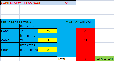 Dans le répartiteur ci-dessous, vous devez fixer un capital moyen sur la course. Par exemple : 50 euros.
