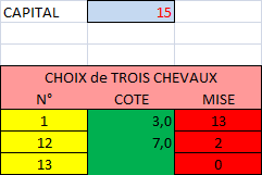 Dans le répartiteur ci-dessous, vous devez fixer un capital sur la course. Par exemple : 15 euros.